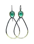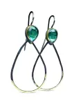 EARRINGS > Green Kyanite Long Teardrop Rim Dangle Earrings, Sterling Silver-Oxidized