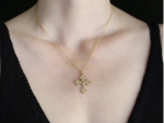Elegant Orthodox Cross with Sapphire on a bronze 2m Rolo chain, 18". Perfect for daily wear, this piece combines timeless faith with modern style, offering a touch of spiritual elegance.